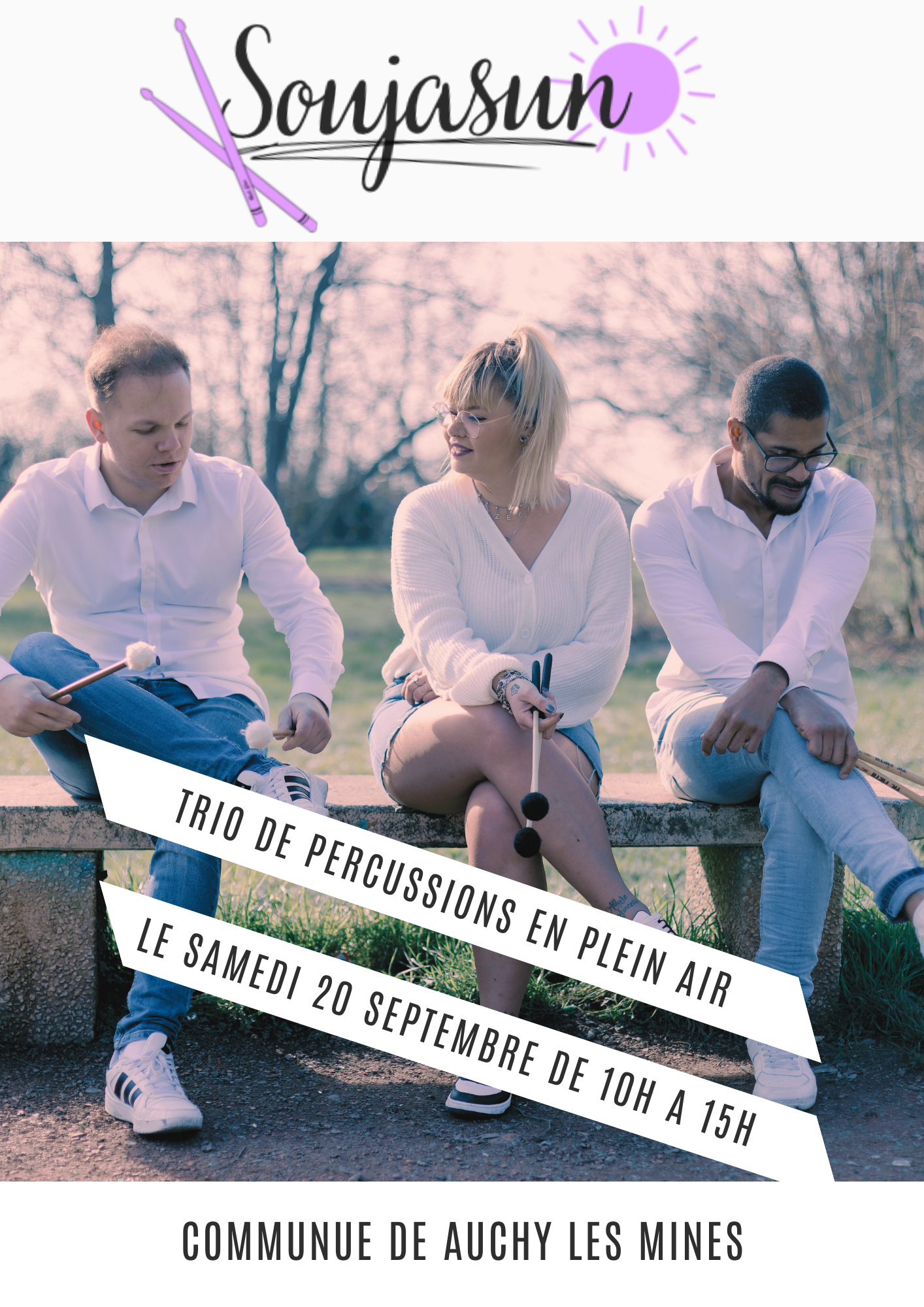 Le trio Soujasun « samba/batucada » vous plonge au coeur des rythmes du Brésil. Inspirés des Samba, les musiciens proposent une musique énergique, festive et communicative, idéale pour faire vibrer le public.